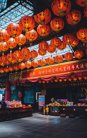 春節の風習として「天燈」と呼ばれる紙製のランタンに無病息災などの祈りを書き込み、 火種を用いて熱気球と同じ原理で空に飛ばす儀式。 吉祥や邪気払いの意味があります。